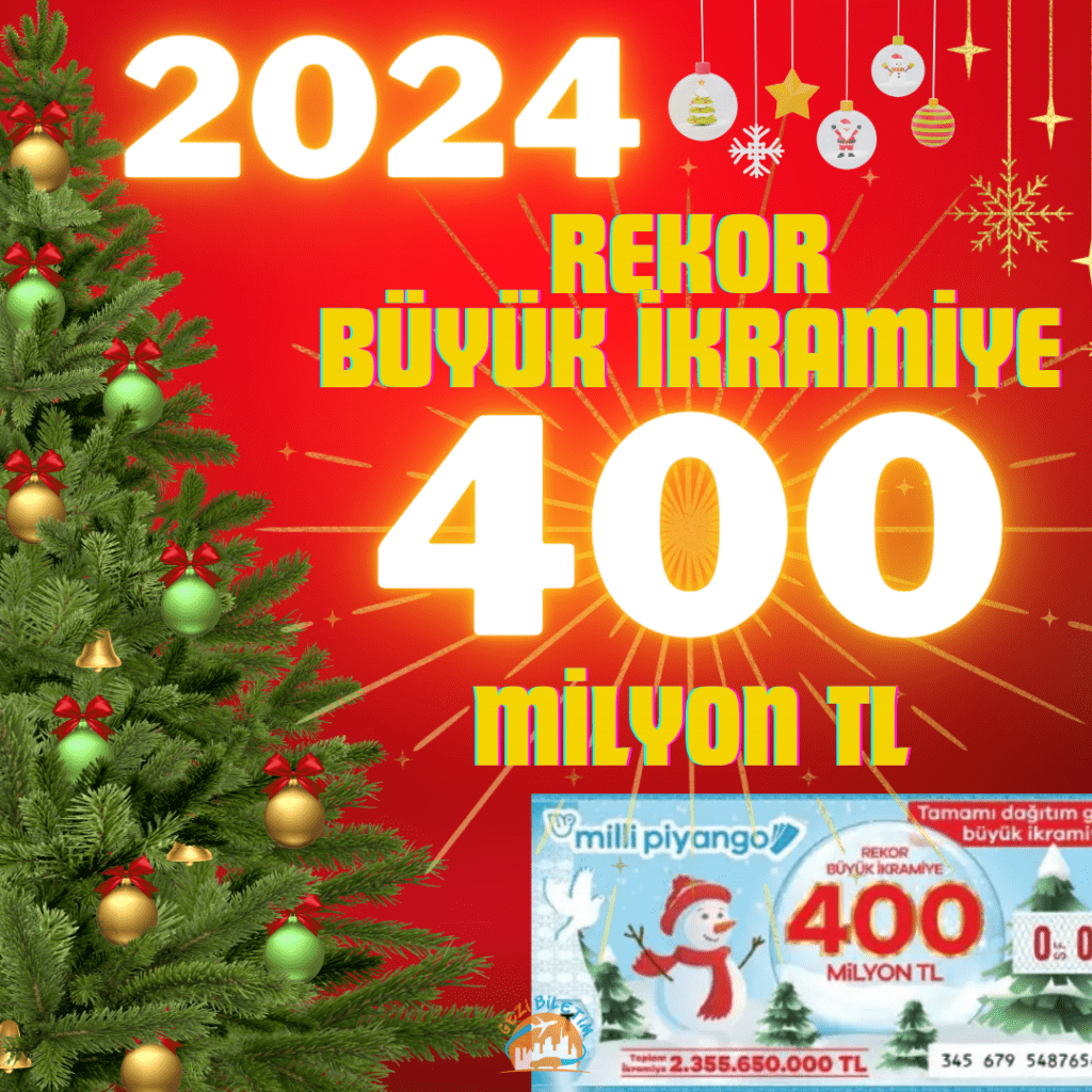 Bu yılki büyük ikramiye tam 400 milyon TL! Toplam ikramiye tutarı ise 2 milyar 355 milyon 650 bin TL olacak. Büyük ödülü kazanmak isteyenler, çeyrek, yarım veya tam bilet alarak şanslarını artırabilirler.