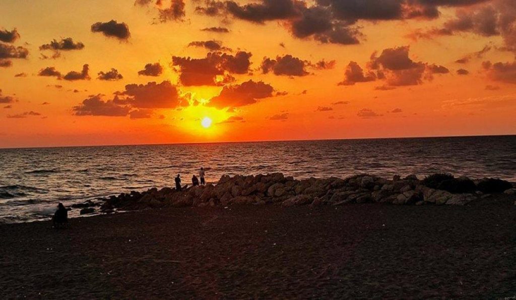 Samandağ ilçesinde bulunan sahilde gün batımıyla birlikte kızıla bürünen gökyüzü görsel bir şölen oluşturdu. Gün batımının kartpostallık görüntüsü izleyenleri mest etti.